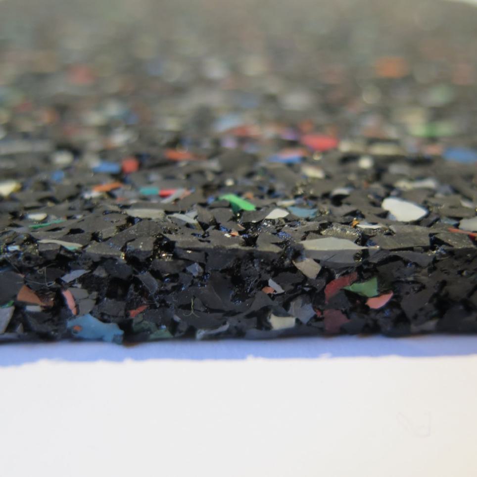 Die Farbe der Antivibrationsmatte ist schwarz, mit farbigen Einschlüssen.